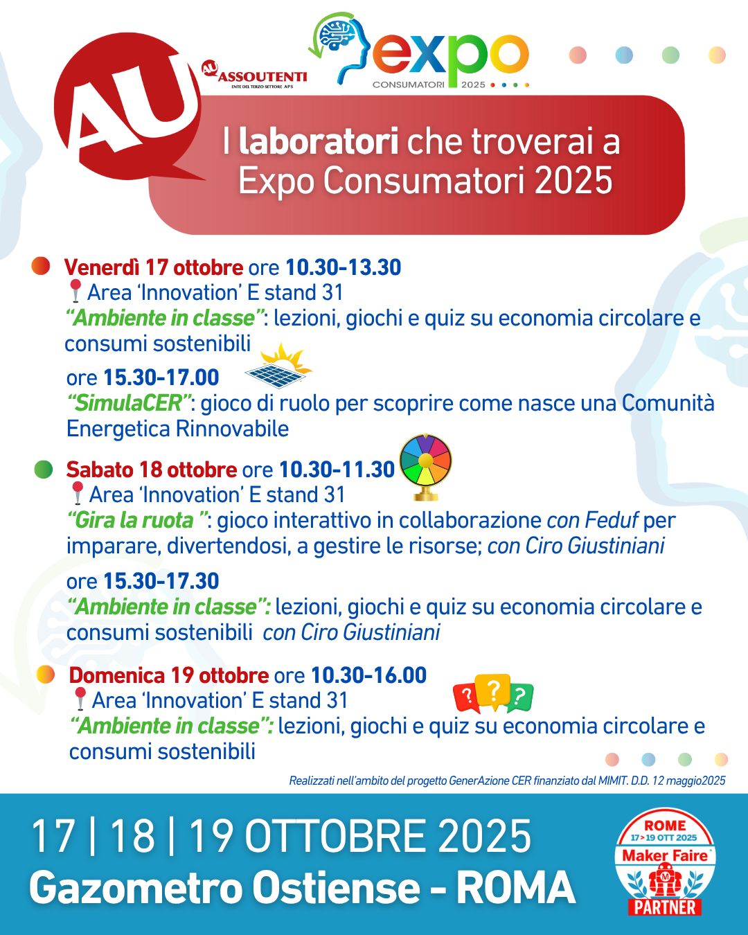 Dal 17 al 19 ottobre, l’area del Gazometro di Ostiense a Roma ha ospitato Expo Consumatori, all’interno del Maker Faire, uno degli appuntamenti più attesi dedicati all’innovazione, alla sostenibilità e alla partecipazione attiva dei cittadini.