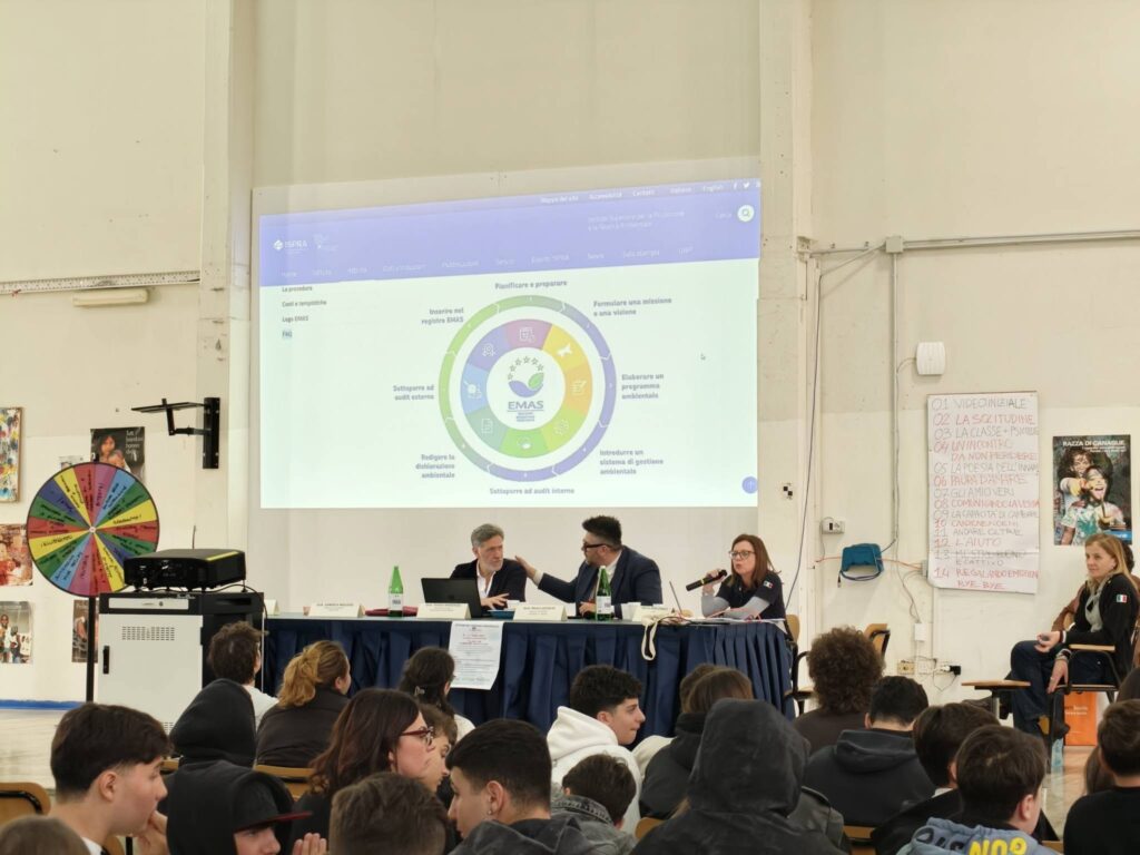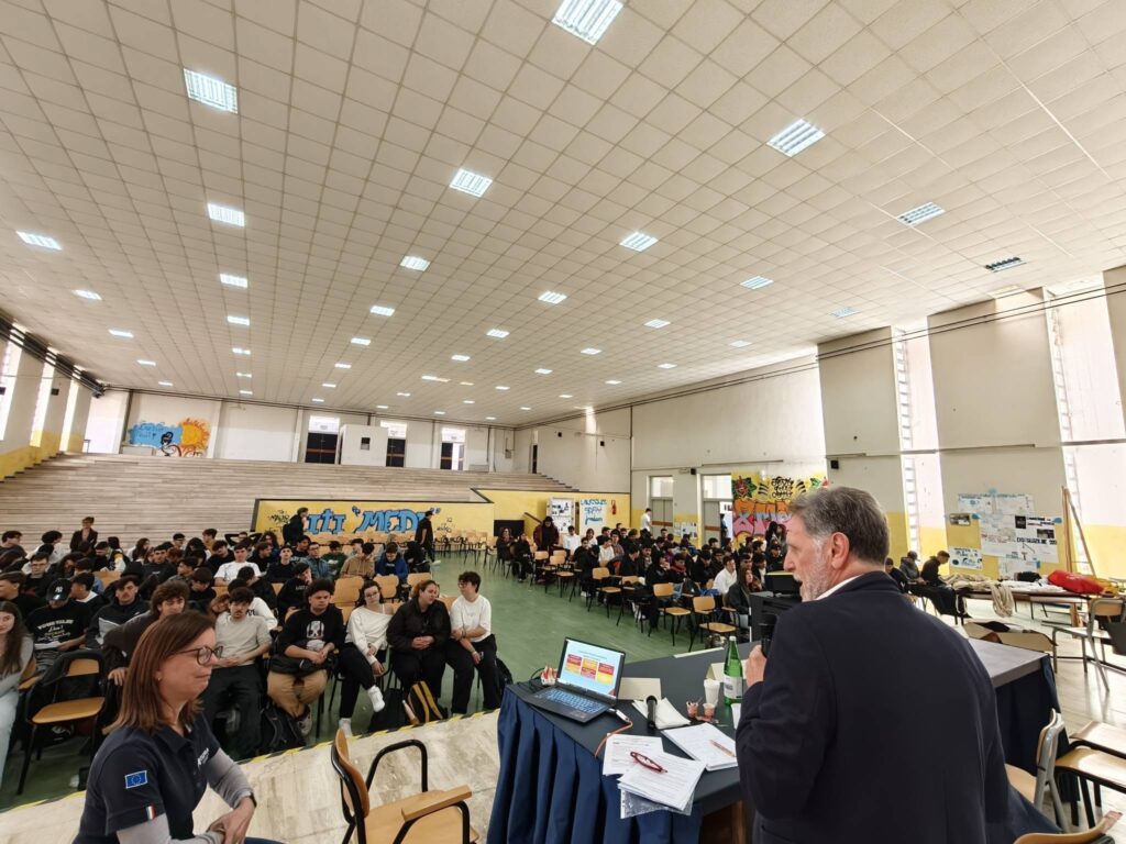 La mattinata del 13 aprile si è svolta presso l’I.T.I. “Enrico Medi” di San Giorgio a Cremano, dove il laboratorio “Ambiente in Classe” ha rappresentato un importante momento formativo. Gli studenti sono stati coinvolti attivamente attraverso quiz, simulazioni e momenti di confronto sui temi della sostenibilità ambientale e del risparmio energetico.